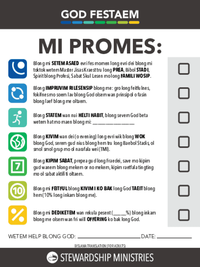Anyone who wishes to make a commitment or promise can file an i promise commitment card.