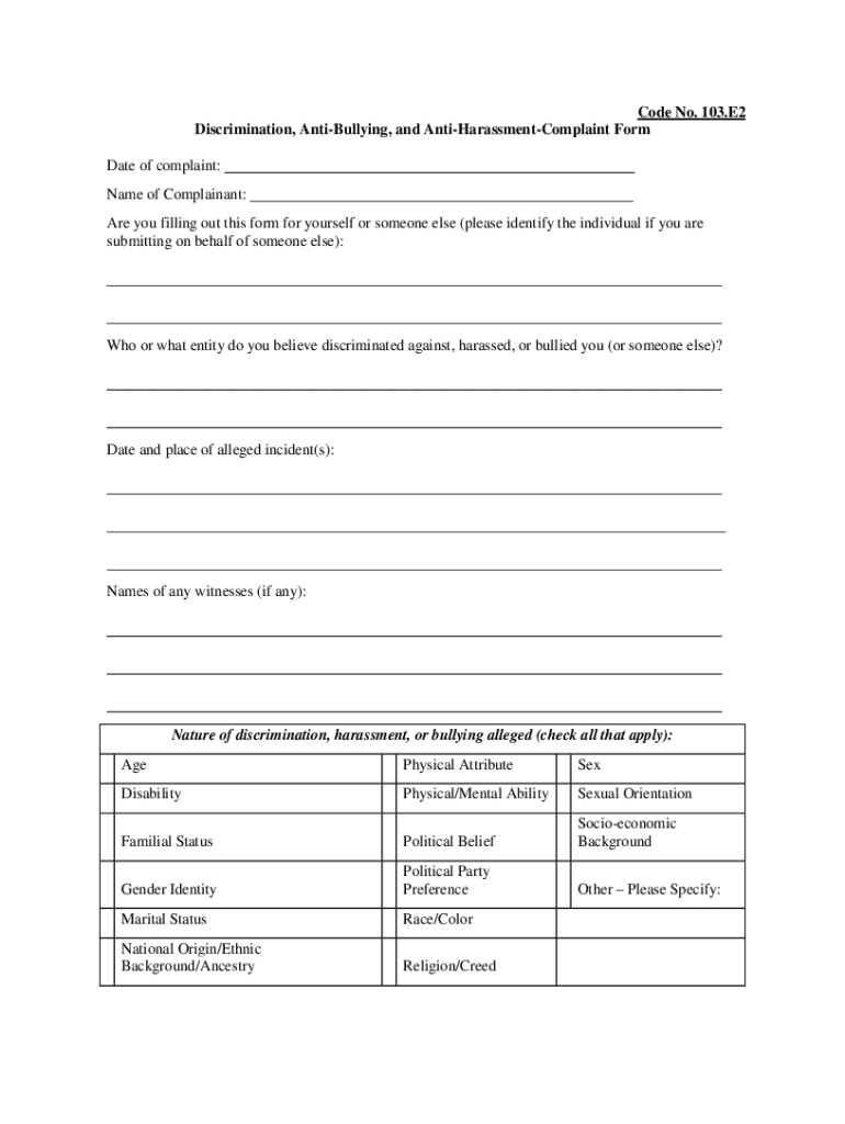 Get the free Code No. 102.E4 COMPLAINT FORM (Discrimination, Anti- ...