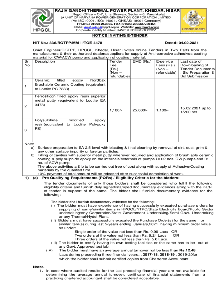 RAJIV GANDHI THERMAL POWER PLANT, HEAR, HI SAR [Red. Office C7, Ursa Shawn, Sector 6, Patchouli] (A UNIT OF HARYANA POWER GENERATION CORPORATION LIMITED)(An ISO: 9001, ISO: 14001, OHSA: 18001 Company)HPGCLPHONE: