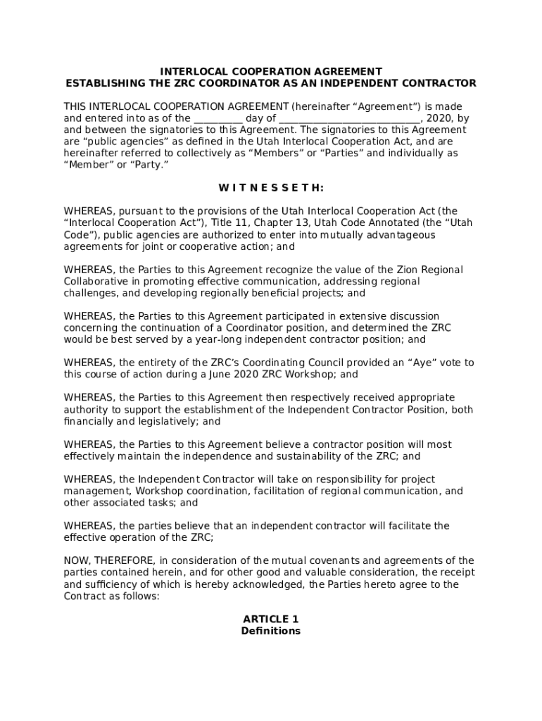 ESTABLISHING THE ZRC COORDINATOR AS AN INDEPENDENT CONTRACTOR template instructions