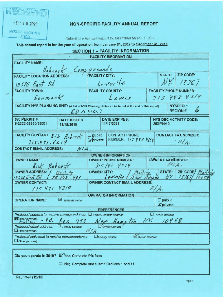 How to fill out non-specific facility annual report?