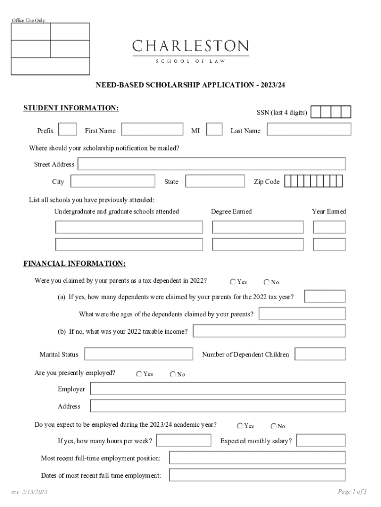 Office Use OnlyNEEDBASED SCHOLARSHIP APPLICATION 2023/24