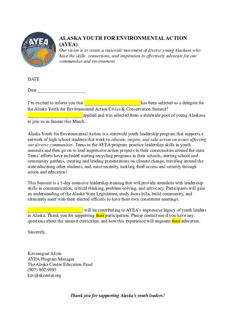 Get the free Stand Up for Alaska: Alaska Youth for Environmental Action