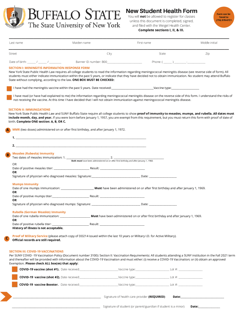 Get the free New Student Health Form - Weigel Health Center - Buffalo State