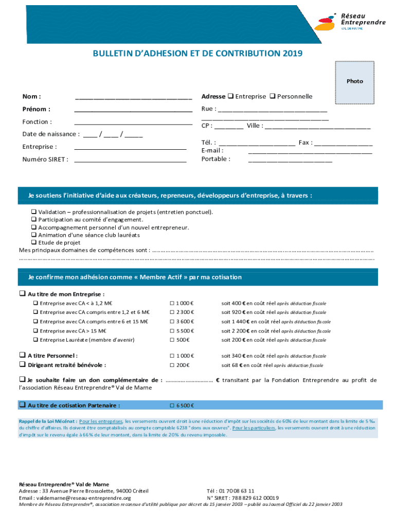 Obtenir le gratuit BULLETIN D'ADHESION ET DE CONTRIBUTION 2019