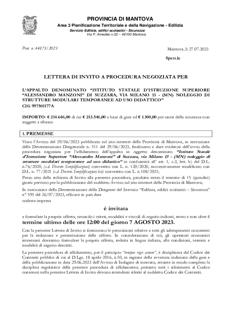 Via P. Amadeo n.32 46100 MantovaProt. n. 44873/2023Mantova, LI 27.07.2023