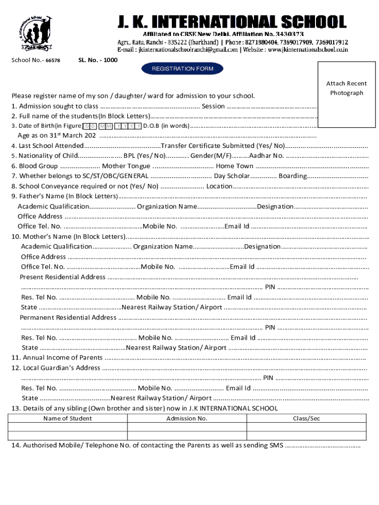 PhotographPlease register name of my son / daughter/ ward for admission to your school.