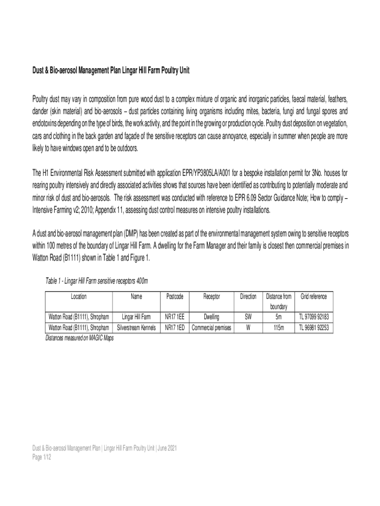 Get the free Dust & Bio-aerosol Management Plan Lingar Hill Farm Poultry ...