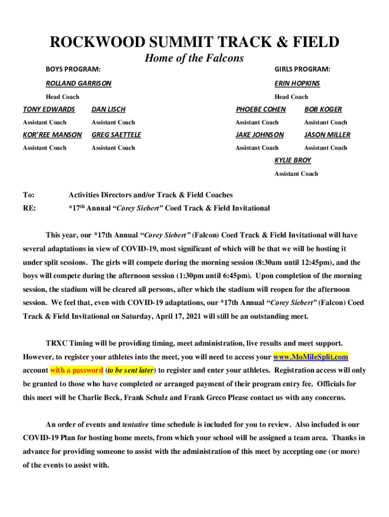 Student athletes participating in the Rockwood Summit Track & Field program are required to file.