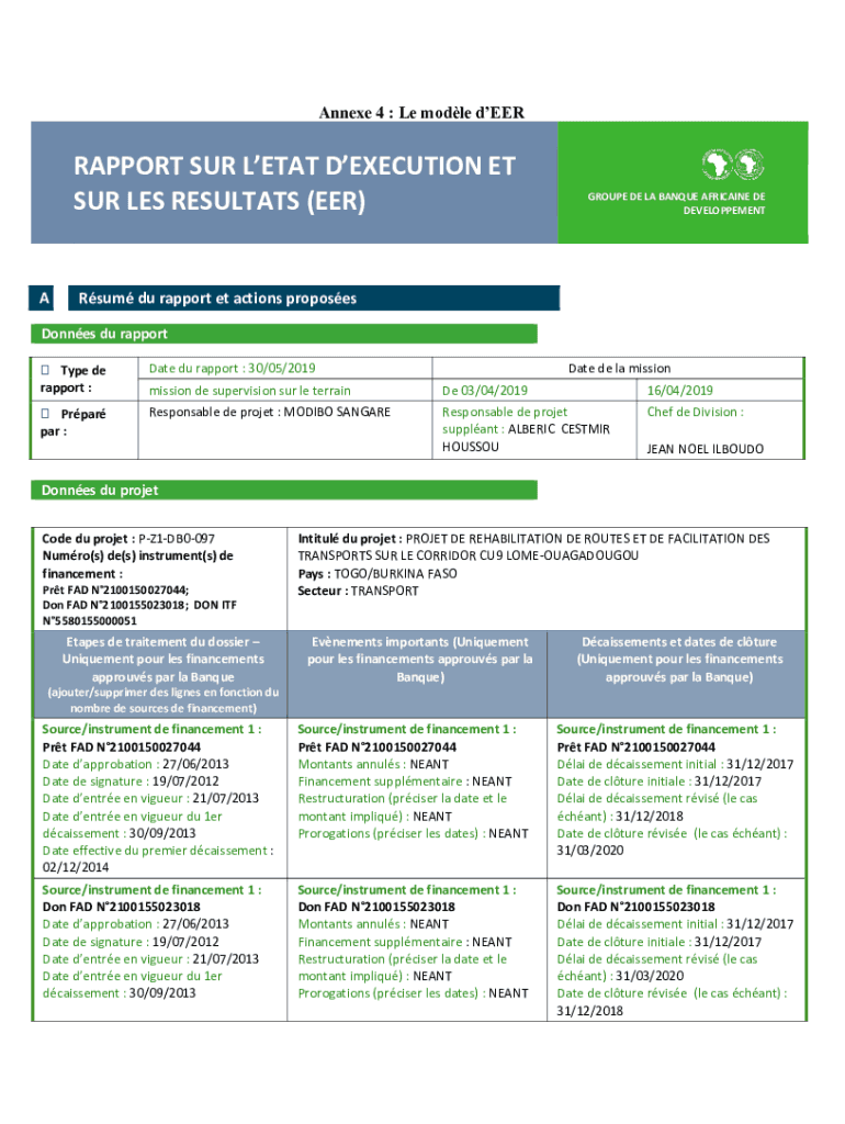 Annexed 4 : Le model dEERRAPPORT SUR LETA EXECUTION ET