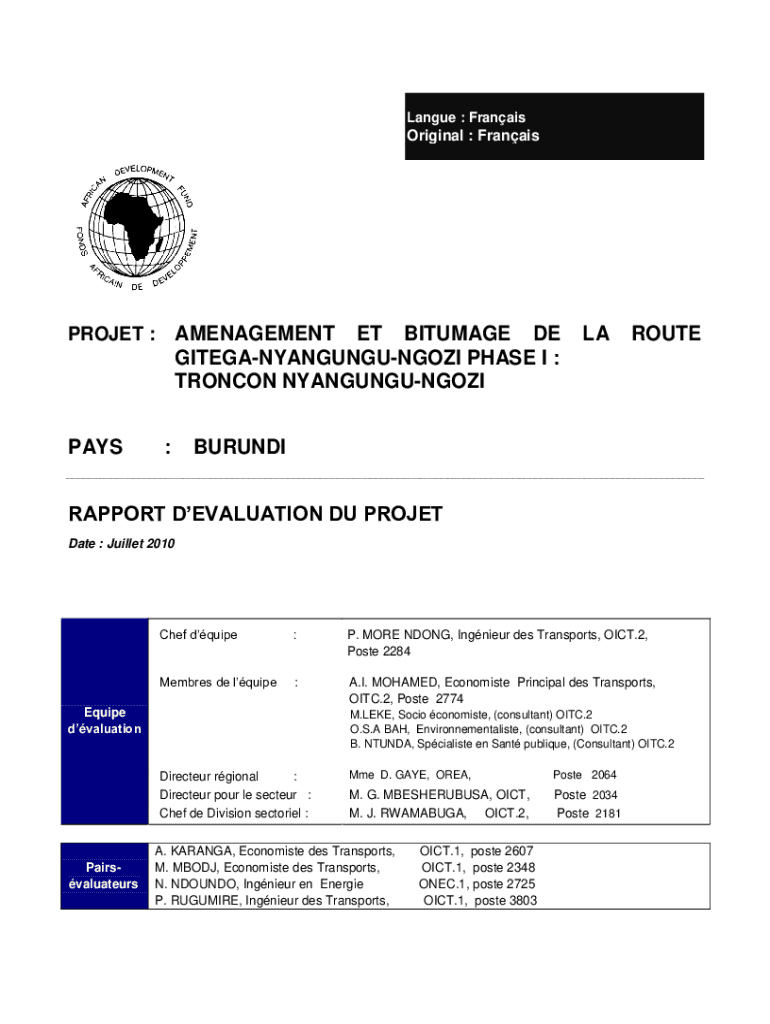 Large : FranaisOriginal : FranaisAMENAGEMENT ET IMAGE DE GITEGANYANGUNGUNGOZI PHASE I : TRON CON NYANGUNGUNGOZIPROJET :PAYS:LAROUTEBURUNDIRAPPORT DEVALUATION DU PROJECT Date : Bullet 2010Chef quite:P.