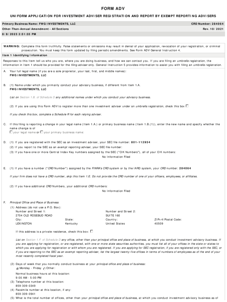 Get the free Primary Business Name: FWG INVESTMENTS, LLC