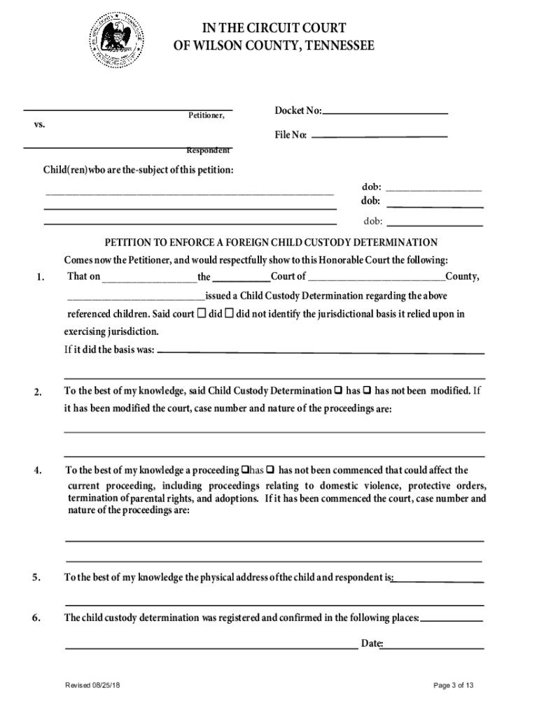 Reset all formsINSTRUCTIONS FOR REGISTRATION OF FOREIGN CHILD CUSTODY DETERMINATIONSPrintThis court has jurisdiction to register and enforce child custody determinations from other states. There are