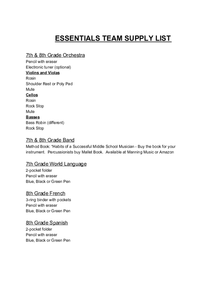 Edit your 7th grade supply listnew form online