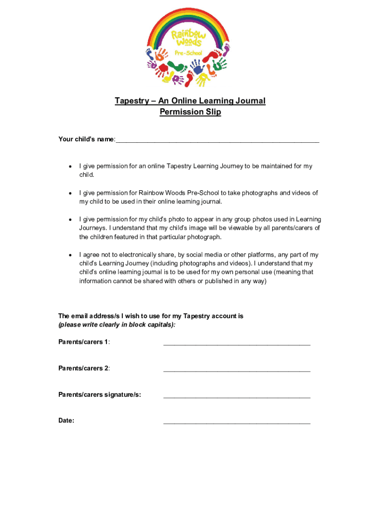 Tapestry An Online Learning Journal Permission Slip Your children name:___I give permission for an online Tapestry Learning Journey to be maintained for my child. I give permission for Rainbow Woods