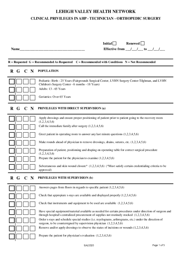 Get the free clinical privileges in ahp - technician - orthopedic surgery