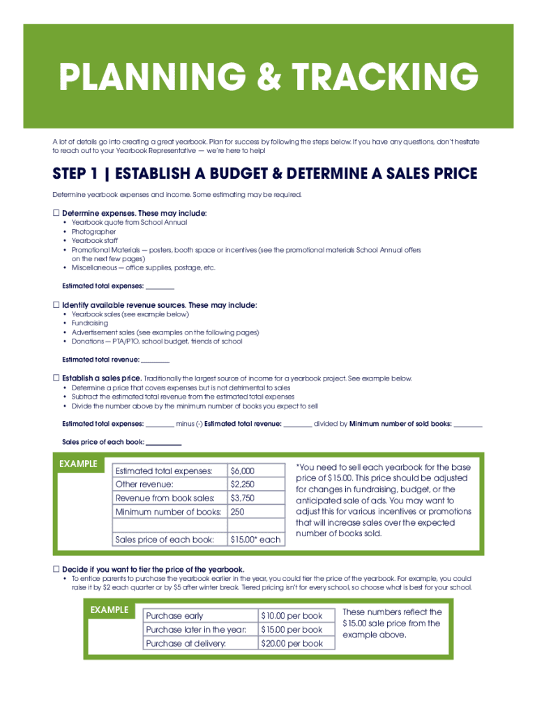 PLANNING & TRACKING A lot of details go into creating a great yearbook. Plan for success by following the steps below. If you have any questions, don't hesitate to reach out to your Yearbook Representative