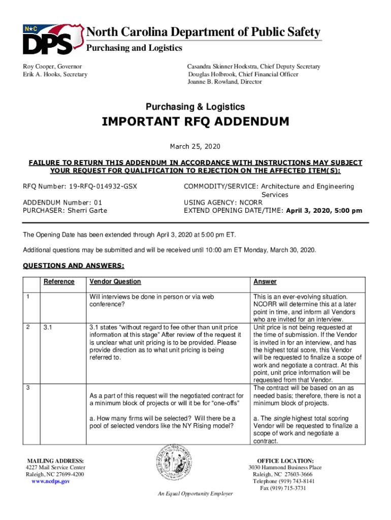 Erik A. Hooks, Secretary Casandra Skinner Dijkstra, Chief Deputy Secretary