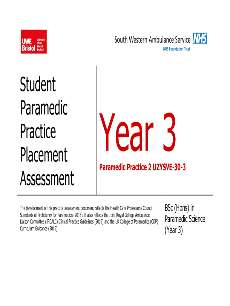 Paramedic Practice 2 UZYSVE303The development of this practice assessment document reflects the Health Care Professions Council