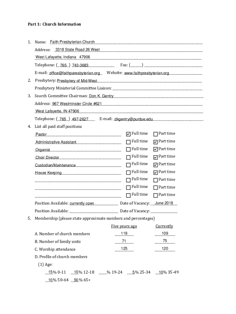 CHURCH INFORMATION Reintroduction The Ministerial Vocation Committee and the Office of the Stated Clerk of the Evangelical Presbyterian Church are responsible for denominational vocational services.