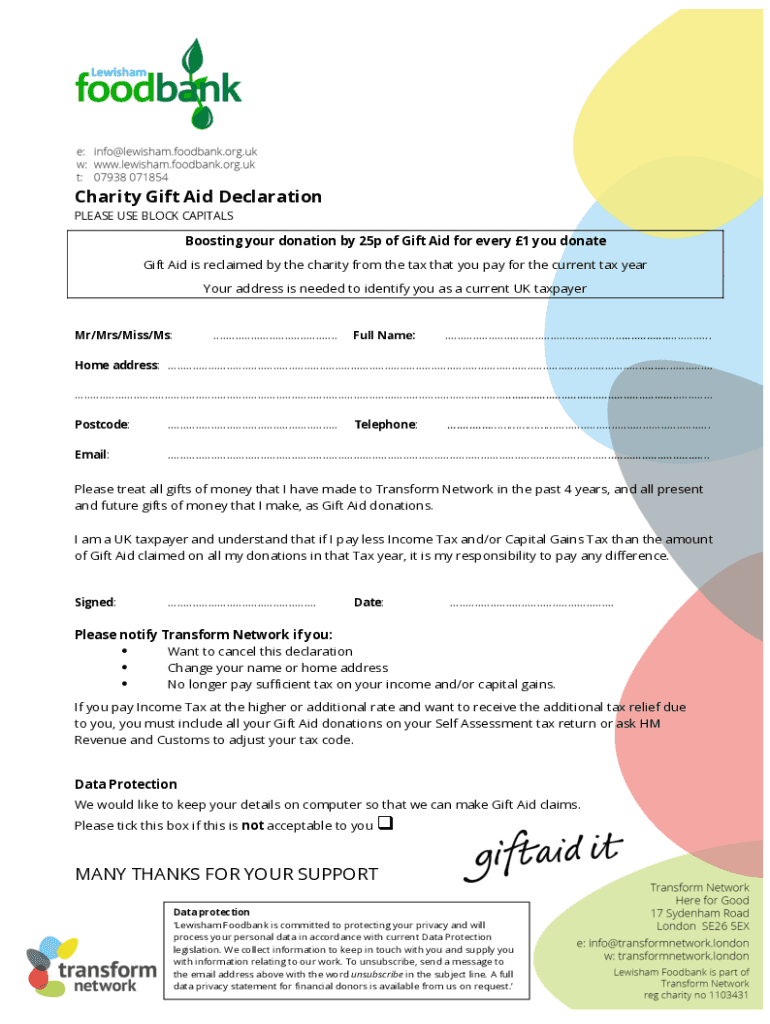 Get the free Gift Aid Declaration (.docx) - lewisham foodbank org
