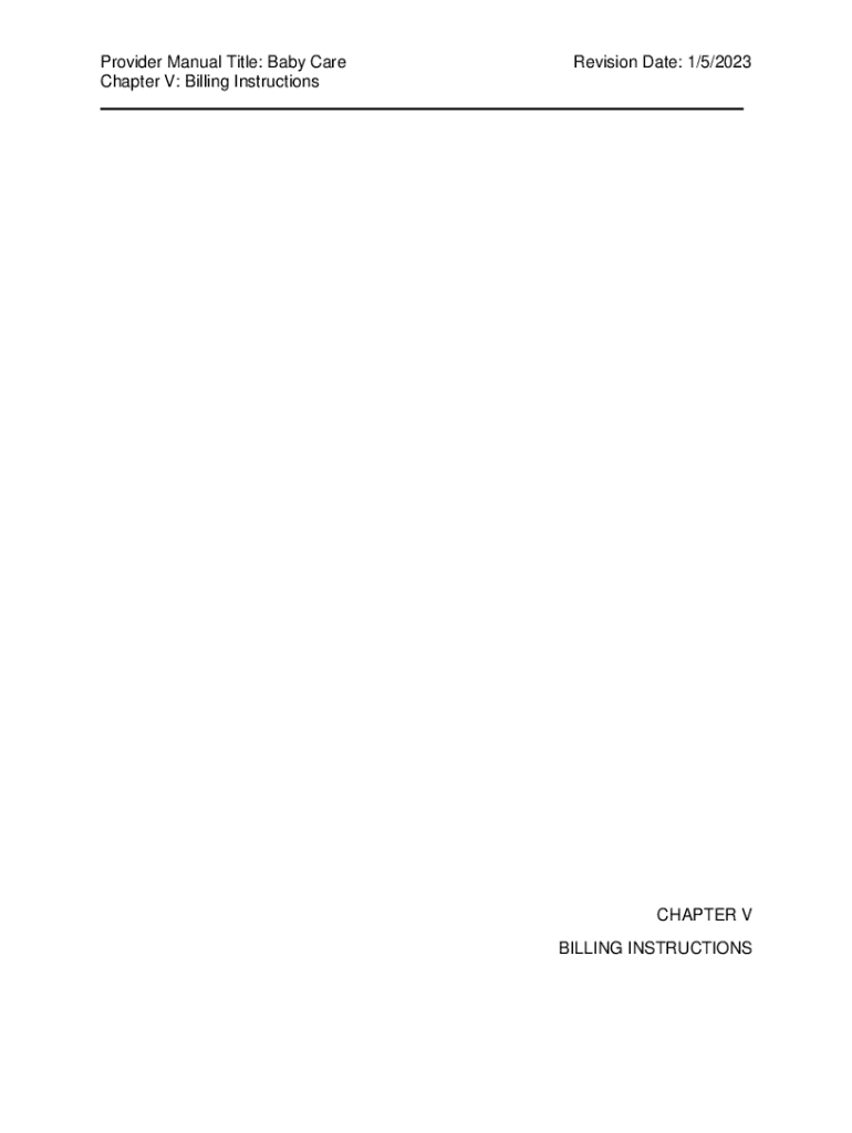 Provider Manual Title: Baby Care Revision Date: 1/5/2023 Chapter V: Billing Instructions ___CHAPTER V BILLING INSTRUCTIONSProvider Manual Title: Baby Care Revision Date: 1/5/2023 Chapter V: Billing