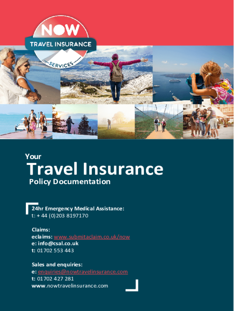 YourTravel Insurance Policy Documentation 24hr Emergency Medical Assistance: t: + 44 (0)203 8197170 Claims: claims: www.submitaclaim.co.uk/now e: info@csal.co.uk t: 01702 553 443 Sales and inquiries: