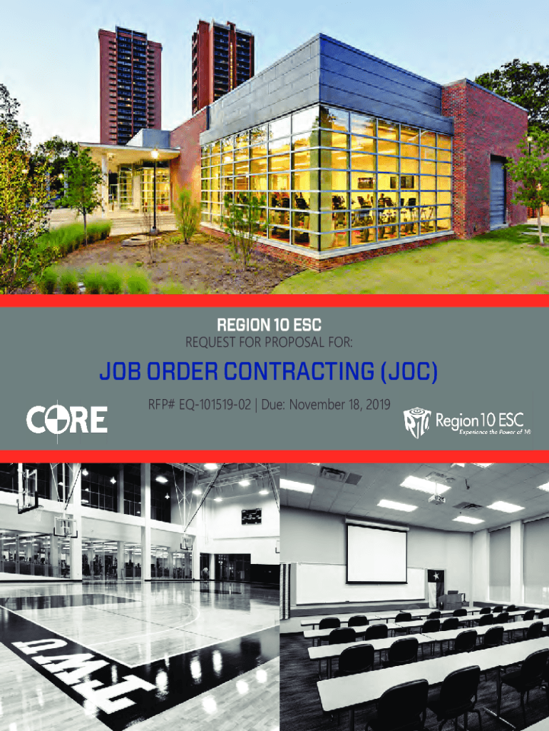 REGION 10 REQUEST FOR PROPOSAL FOR:JOB ORDER CONTRACTING (JOC) RFP# EQ10151902 | Due: November 18, 2019CONTENTSTABLE OF Contents 1 | Vendor Contract and Signature Form (Appendix A) General T&C Acceptance
