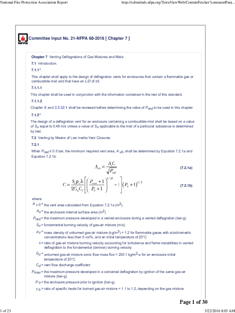 National Fire Protection Association Report1 of 23http://submittals.nfpa.org/TerraViewWeb/ContentFetcher?commentPara... Committee Input No. 21NFPA 682016 [Chapter 7]Chapter 7 Venting Declarations