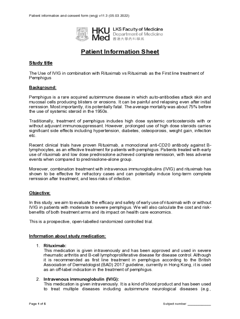 Patient information and consent form (ENG) v11.3 (05.03.2022)Patient Information Sheet Study title The Use of IVG in combination with vs as the First line treatment of Memphis Background: Memphis