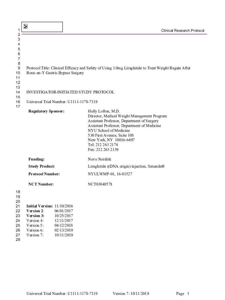 1 2 3 4 5 6 7 8 9 10 11 12 13 14 15 16 1718 19 20 21 22 23 24 25 26 27 28Clinical Research ProtocolProtocol Title: Clinical Efficacy and Safety of Using 3.0 mg to Treat Weight Regain After Rouen