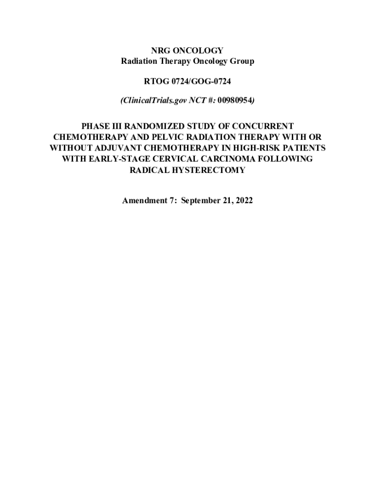 NRG ONCOLOGY Radiation Therapy Oncology Group RTCG 0724/GOG0724 (ClinicalTrials.gov NCT #: 00980954) PHASE III RANDOMIZED STUDY OF CONCURRENT CHEMOTHERAPY AND PELVIC RADIATION THERAPY WITH OR WITHOUT