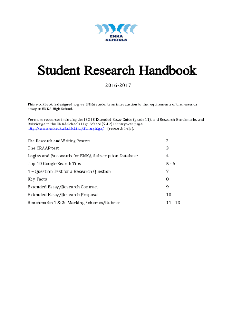 Student Research Handbook 20162017This workbook is designed to give END students an introduction to the requirements of the research essay at END High School. For more resources including the IBO