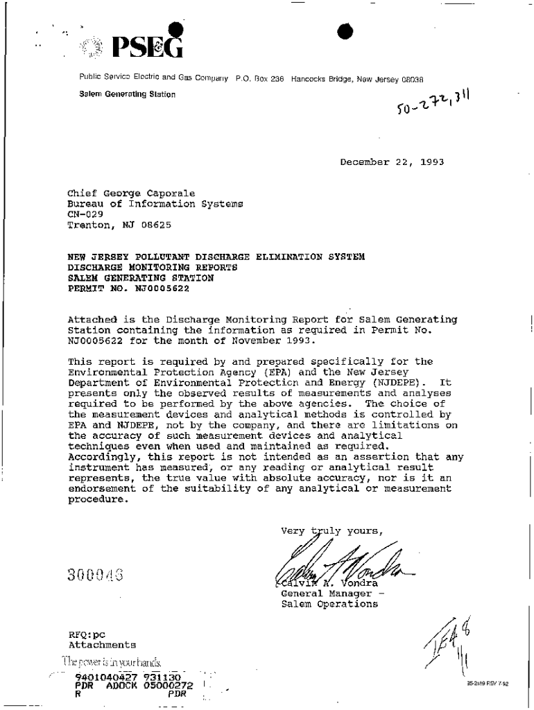 I; \'.;/ePSGPublic Service Electric and Gas Company. O. Box 236Hancocks Bridge, New Jersey 08038Salem Generating Station., .\'l,. ))0 .... \”L1\'\”December 22, 1993 Chief George Capo rale Bureau