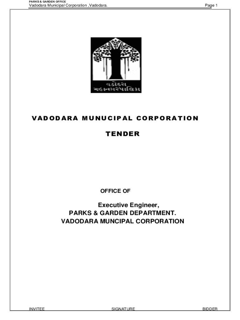 PARKS & GARDEN OFFICEVadodara Municipal Corporation, Vadodara. Page 1VADODARA MUNICIPAL CORPORATIONTENDEROFFICE Executive Engineer, PARKS & GARDEN DEPARTMENT. VADODARA MUNICIPAL CORPORATIONINVITEESIGNATUREBIDDERPARKS
