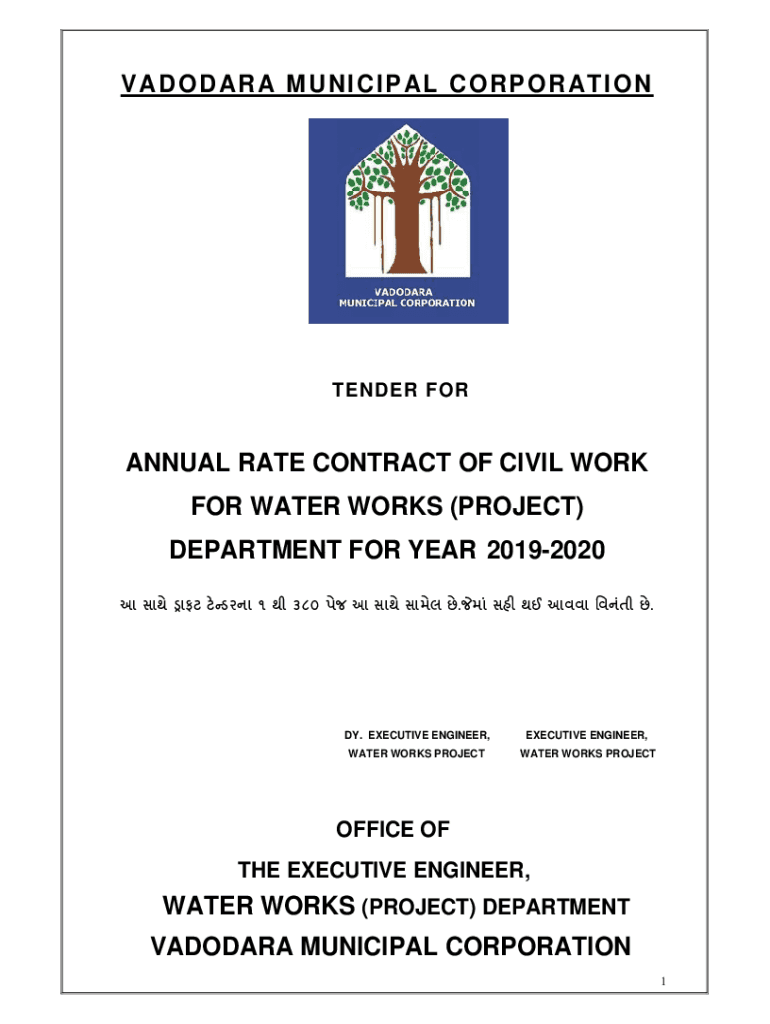 V A D O D A R A M U N I C I P A L C O R PO R A TI ON TENDER ANNUAL RATE CONTRACT OF CIVIL WORK