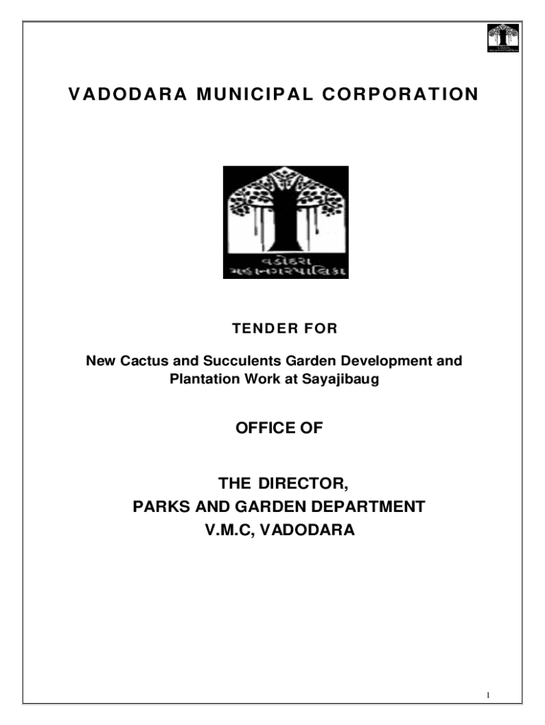 V A D O D A RA MU N IC IP A L C O R PO R A T ION TENDER FOR New Cactus and Succulents Garden Development and Plantation Work at SayajibaugOFFICE THE DIRECTOR, PARKS AND GARDEN DEPARTMENT V.M.C, VADODARA1PREQUALIFICATIONBIDNAME
