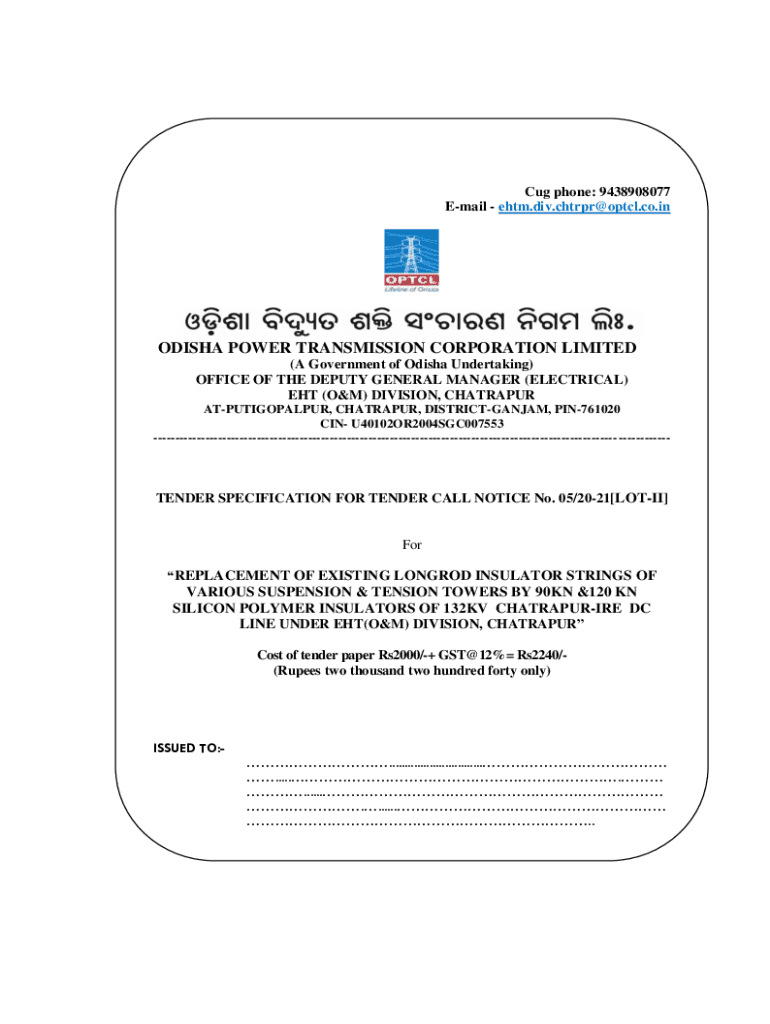 Email ehtm.div.chtrpr@optcl.co.inODISHA POWER TRANSMISSION CORPORATION LIMITED