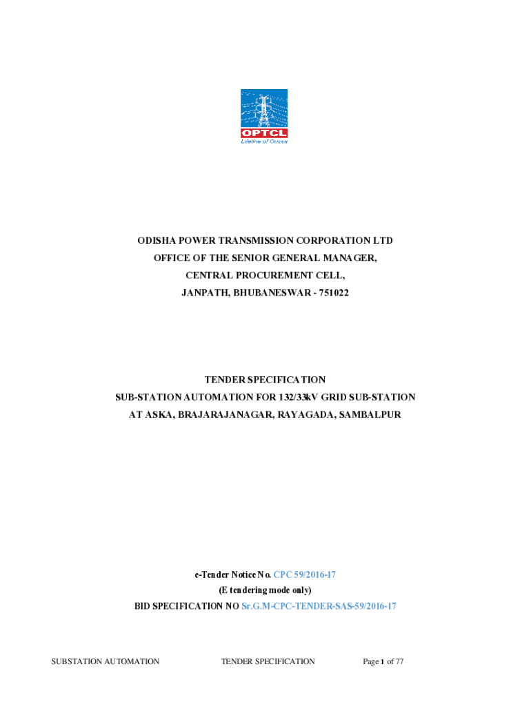 WARPATH, BHUBANESWAR 751022TENDER SPECIFICATION
