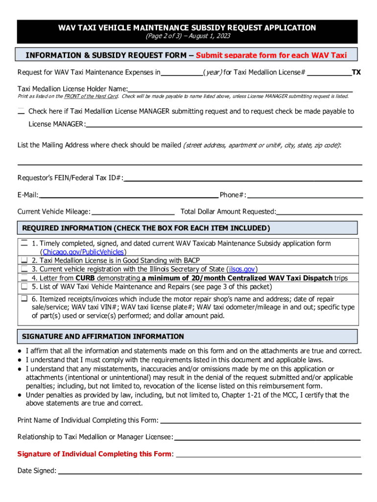 Get the free WAV TAXI OWNER-OPERATOR SUBSIDY REQUEST ( ...