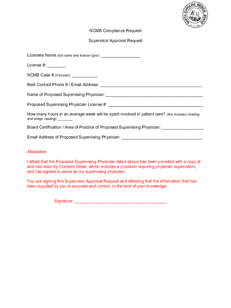 Get the free NCMB Compliance Request Supervisor Approval Request