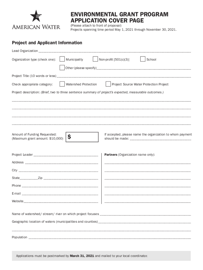 Get the free ENVIRONMENTAL GRANT PROGRAM APPLICATION COVER ...