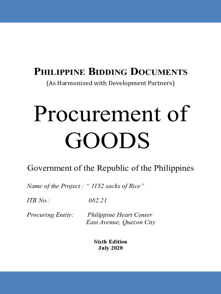PHILIPPINE BIDDING DOCUMENTS (As Harmonized with Development Partners)Procurement of GOODS Government of the Republic of the Philippines Name of the Project : 1152 sacks of Rice ITB No.: Procuring