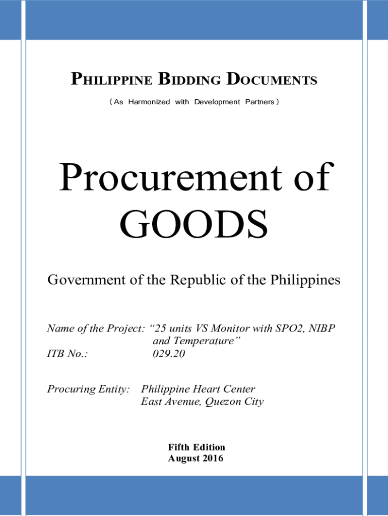 PHILIPPINE BIDDING DOCUMENTS (As Harmonized with Development Partners)Procurement of GOODS Government of the Republic of the Philippines Name of the Project: 25 units VS Monitor with SPO2, IBP and