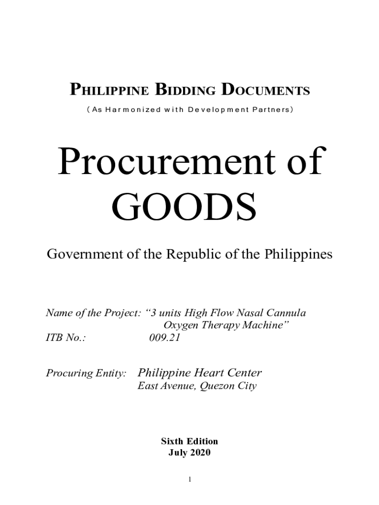 PHILIPPINE BIDDING DOCUMENTS (As H an r m o n i zed w i t h D e v e l o p m e n t Pa r t né rs)Procurement of GOODS Government of the Republic of the PhilippinesName of the Project: 3 units High
