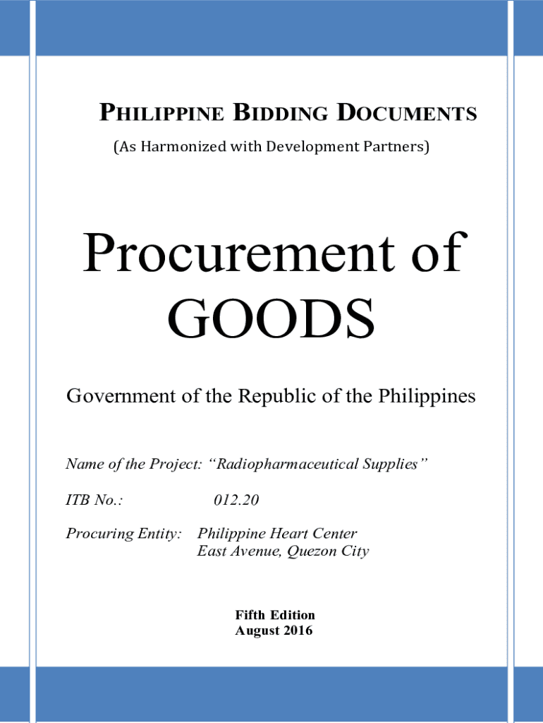 PHILIPPINE BIDDING DOCUMENTS (As Harmonized with Development Partners)Procurement of GOODS Government of the Republic of the Philippines Name of the Project: Radio pharmaceutical Supplies ITB No.:012.20Procuring