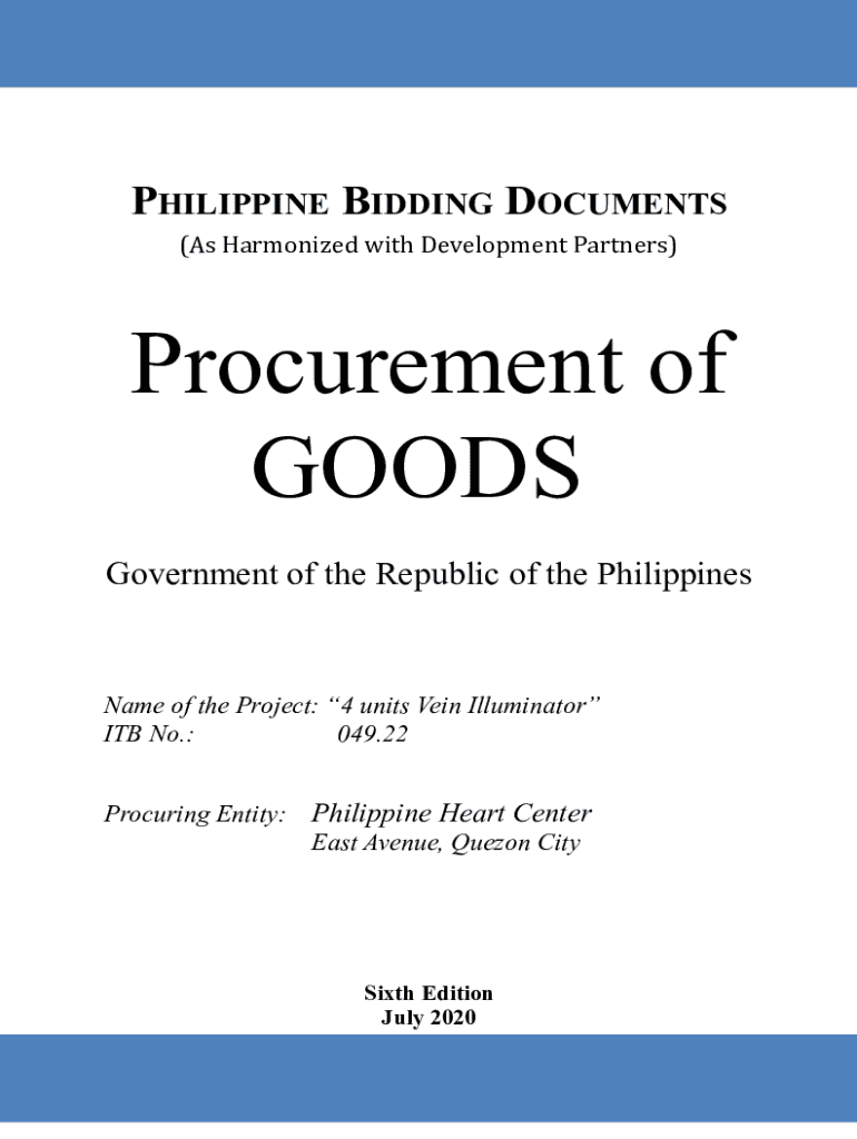 PHILIPPINE BIDDING DOCUMENTS (As Harmonized with Development Partners)Procurement of GOODS Government of the Republic of the PhilippinesName of the Project: 4 units Vein Illuminator ITB No.: 049.22