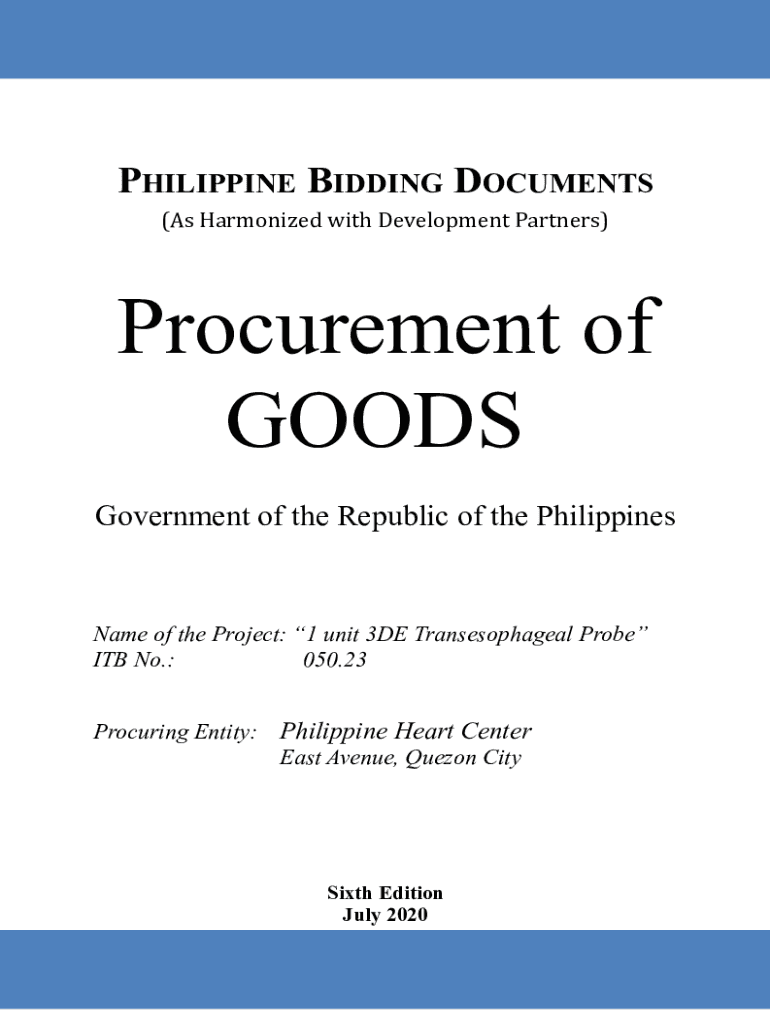 PHILIPPINE BIDDING DOCUMENTS (As Harmonized with Development Partners)Procurement of GOODS Government of the Republic of the PhilippinesName of the Project: 1 unit 3DE Transesophageal Probe ITB No.: