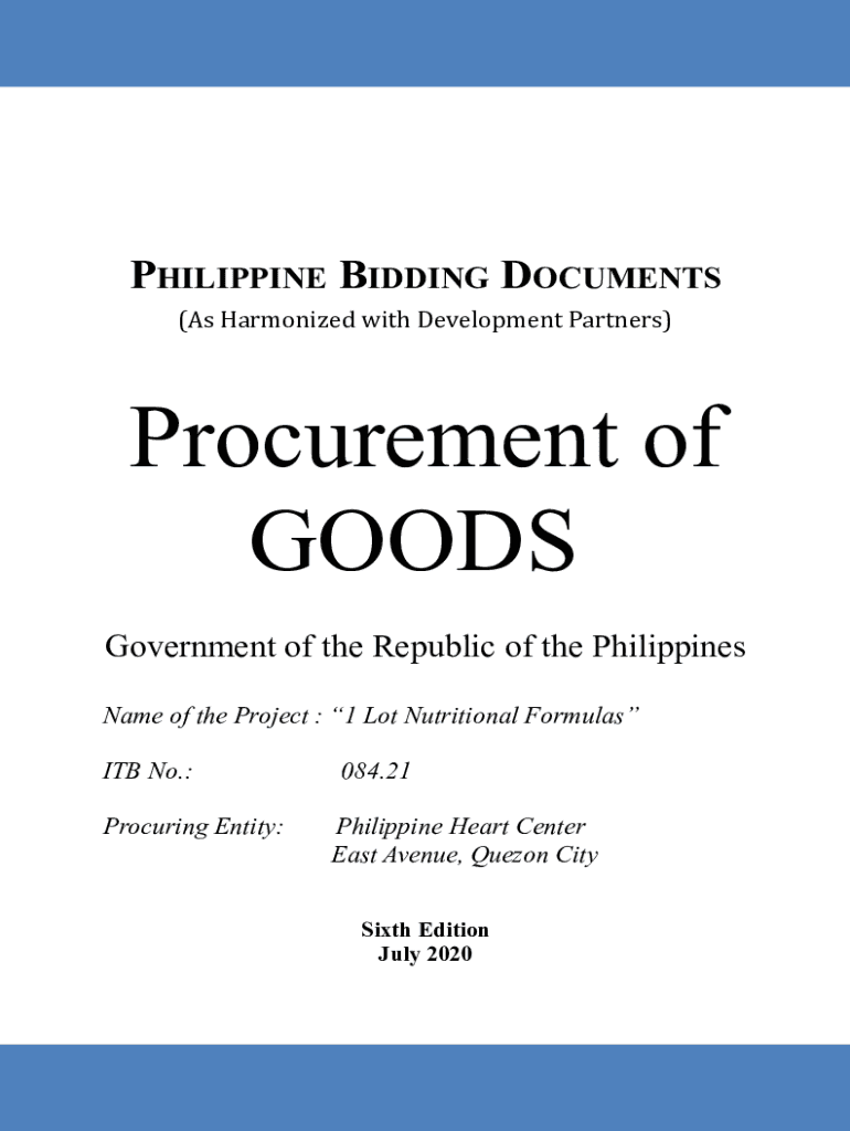 PHILIPPINE BIDDING DOCUMENTS (As Harmonized with Development Partners)Procurement of GOODS Government of the Republic of the Philippines Name of the Project : 1 Lot Nutritional Formulas ITB No.: Procuring