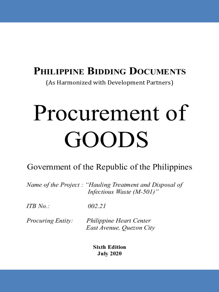 PHILIPPINE BIDDING DOCUMENTS (As Harmonized with Development Partners)Procurement of GOODS Government of the Republic of the Philippines Name of the Project : Hauling Treatment and Disposal of Infectious